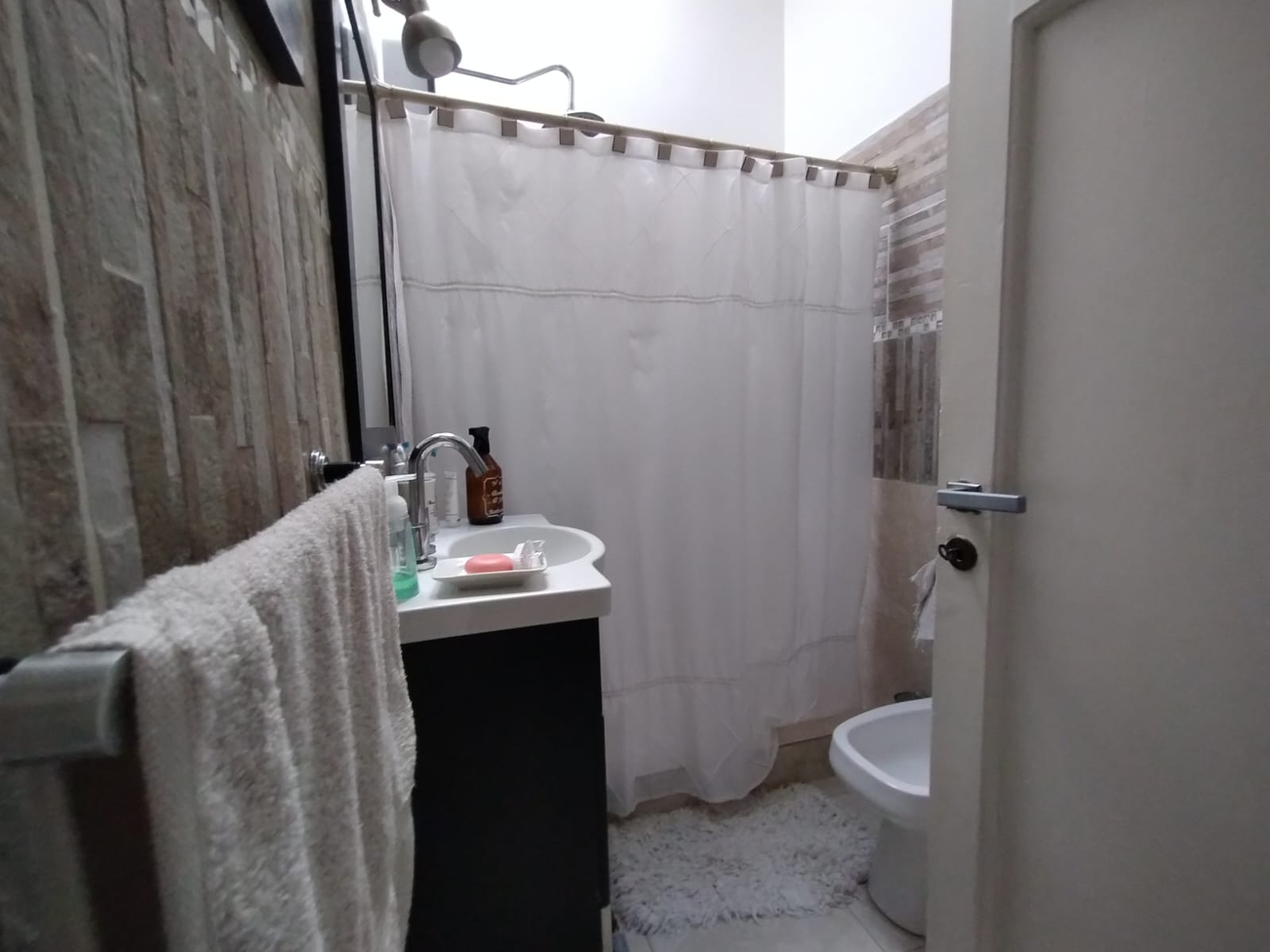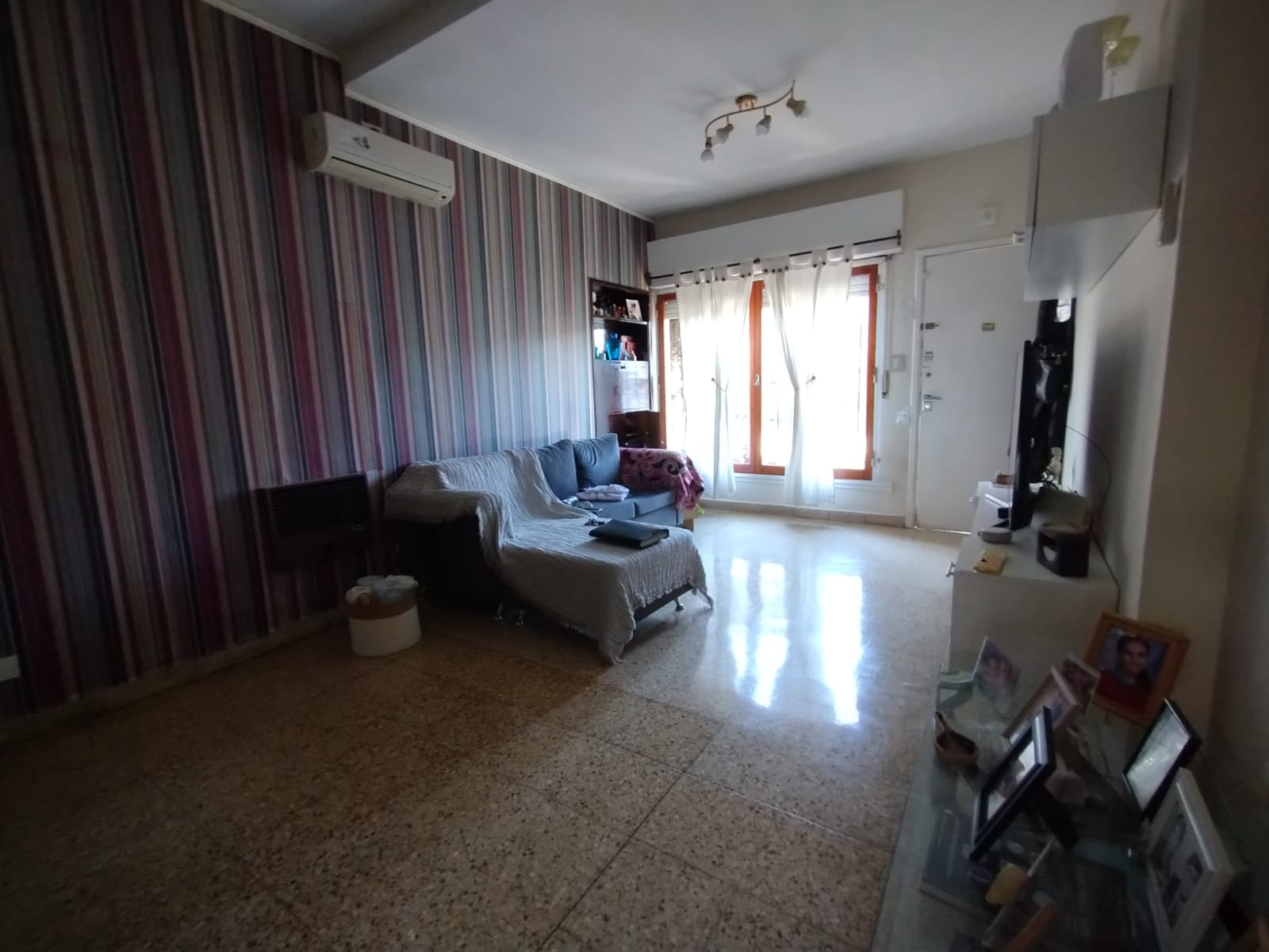 La propiedad cuenta con dos dormitorios amplios y luminosos, un escritorio con placard que también puede funcionar como tercer dormitorio, un baño completo, living, y una cocina independiente conectada al comedor con hogar a gas, creando un ambiente cálido y familiar.