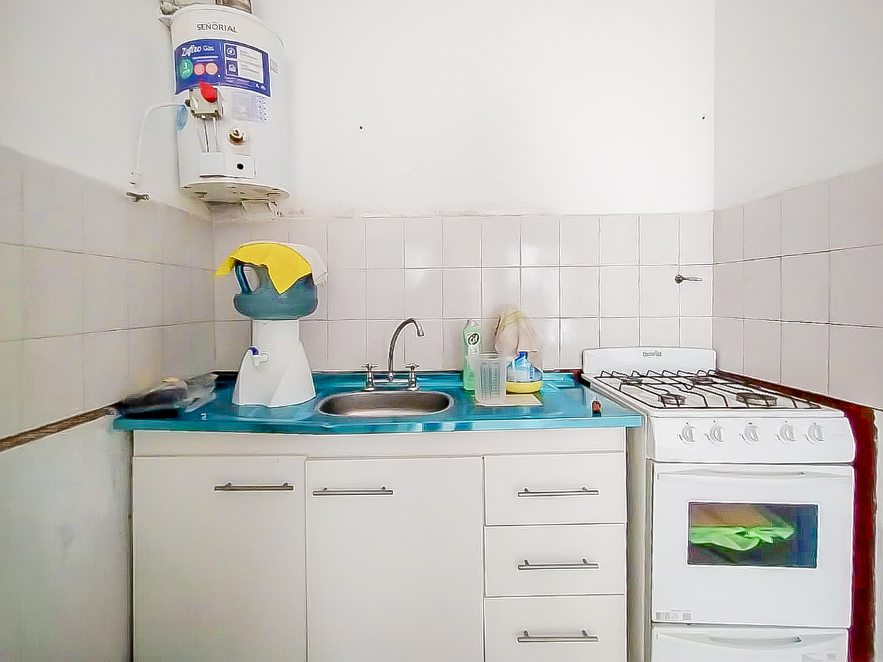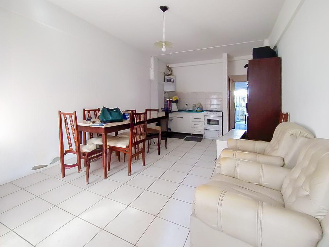 La unidad cuenta con aproximadamente 35 m² totales, distribuida en living-comedor con cocina integrada tipo kitchenette, dormitorio con placard y baño completo. Los ambientes tienen pisos de cerámica y dispone de un pequeño patio descubierto con lavadero integrado, ideal para tareas diarias.