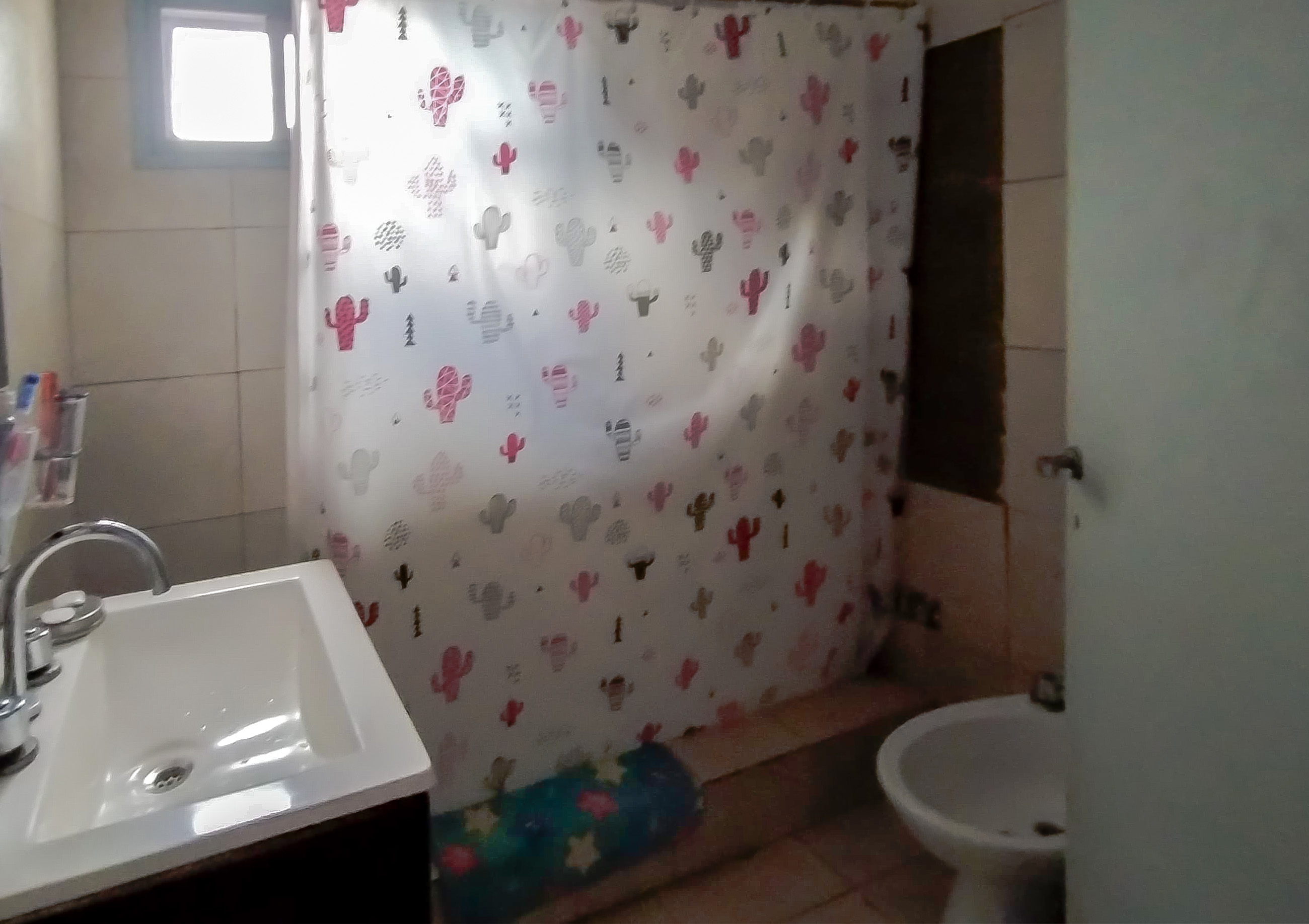 La casa principal se desarrolla en planta baja y cuenta con un living cómodo, una cocina comedor funcional con pisos cerámicos, tres dormitorios, un baño completo y un toilette adicional. El lavadero se encuentra integrado a la vivienda para mayor practicidad. La propiedad dispone de cochera descubierta y una segunda cochera cubierta y cerrada, brindando espacio para más de un vehículo.